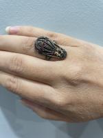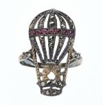BAGUE "Montgolfière" en or 750/°° et argent 800/°° animée de deux personnages dans la nacelle...
