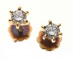 Paire de BOUTONS d'OREILLES en or jaune 750/°° ornés chacun d'un diamant taillé en brillant de 0.15 ct environ, fermoir vis. Poids brut : 1.7 g.