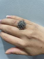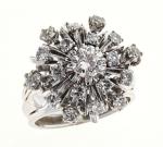 BAGUE "Flocon" en platine 850/°° sertie de diamants dont un plus important au centre de...