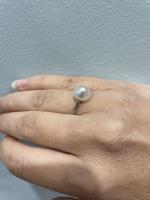 BAGUE en platine 850/°° ornée d'une demi-perle baroque. Travail français, époque Art Déco vers 1920?....