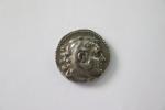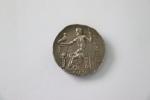 ALEXANDRE III 336-323 frappé en PHENICIE par SELEUCOS II sans doute à GABALA en 225/224 (date en phenicien année 35 ) tres rare (R3 sur le Hoover)( voir SEYRIG RN 1964 ) symbole palmier surmonté d un GAMMA ,unique? Petit défaut de flan à l'avers.