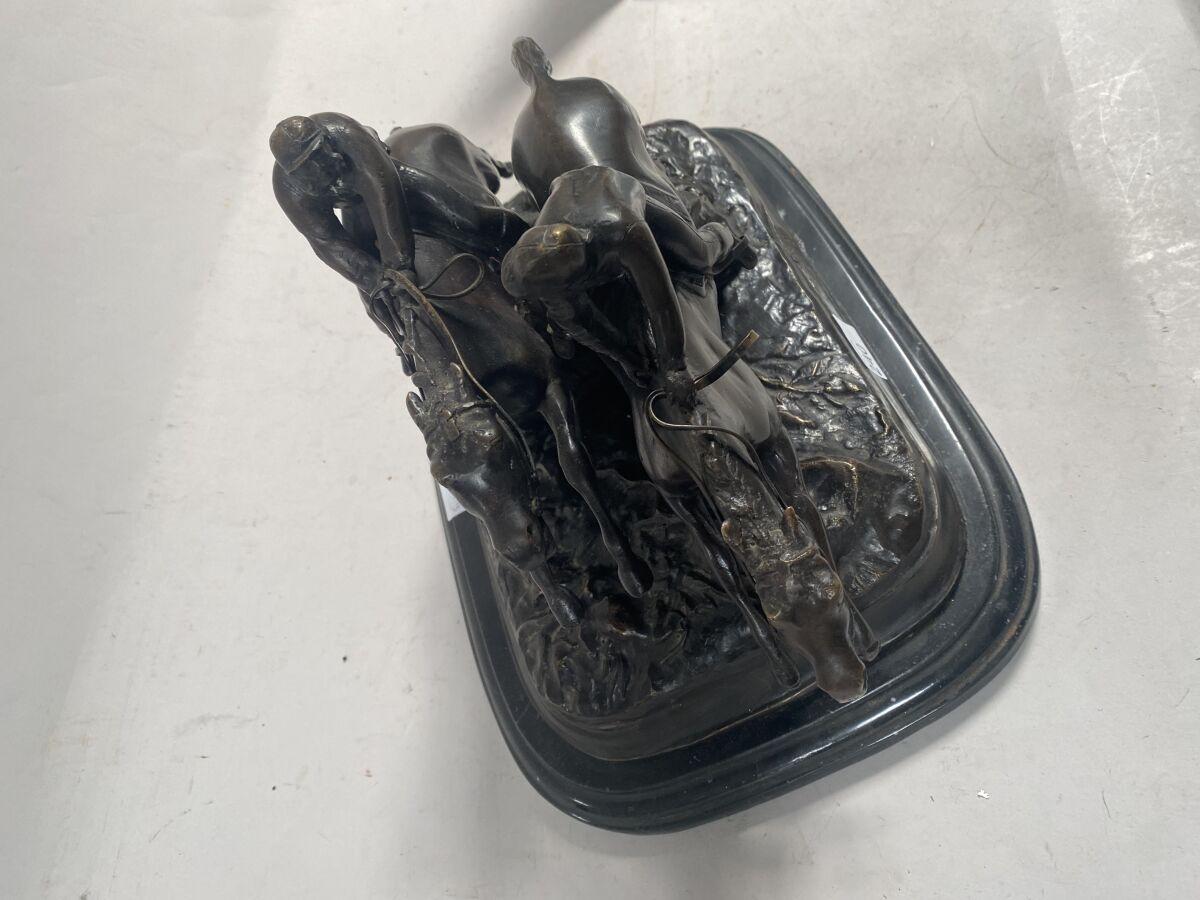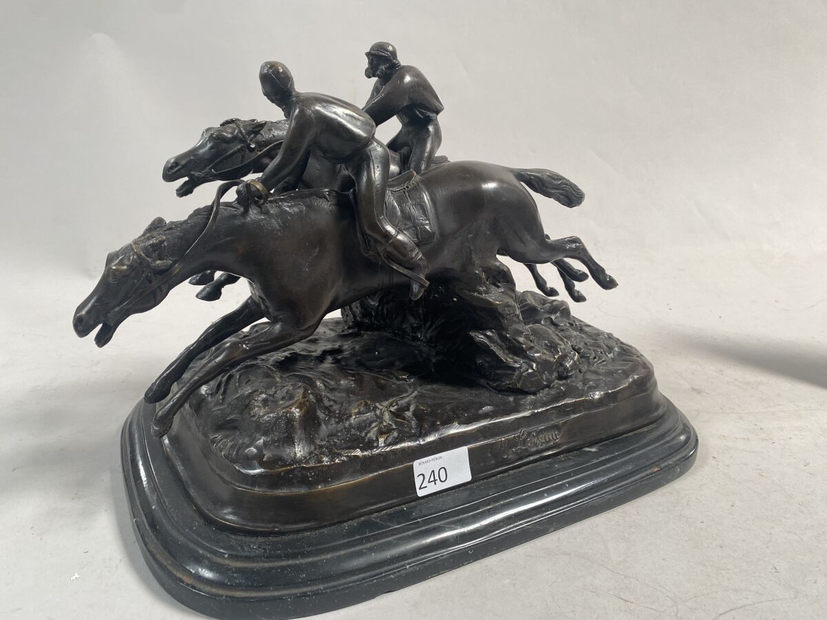 D'après Émile LOISEAU (1861-1927) "Jockey au galop" Bronze à patine nuancée, signé sur la base, reposant sur...