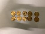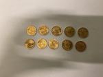 Ensemble de dix PIECES de 20 francs Suisse en or : 1935, 1947.