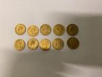 Dix PIECES de 20 lires en or : 1841, 1882, 1863, 1849, 1835, 1861, 1865, 1862.