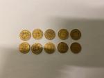 Dix PIECES de 20 lires en or : 1841, 1882, 1863, 1849, 1835, 1861, 1865,...