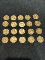 Ensemble de vingt SOUVERAINS en or. Usures.