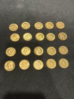 Ensemble de vingt SOUVERAINS en or. Usures.
