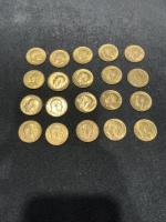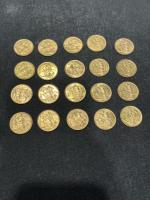 Ensemble de vingt SOUVERAINS en or. Usures.