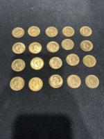 Ensemble de vingt SOUVERAINS en or. Usures.