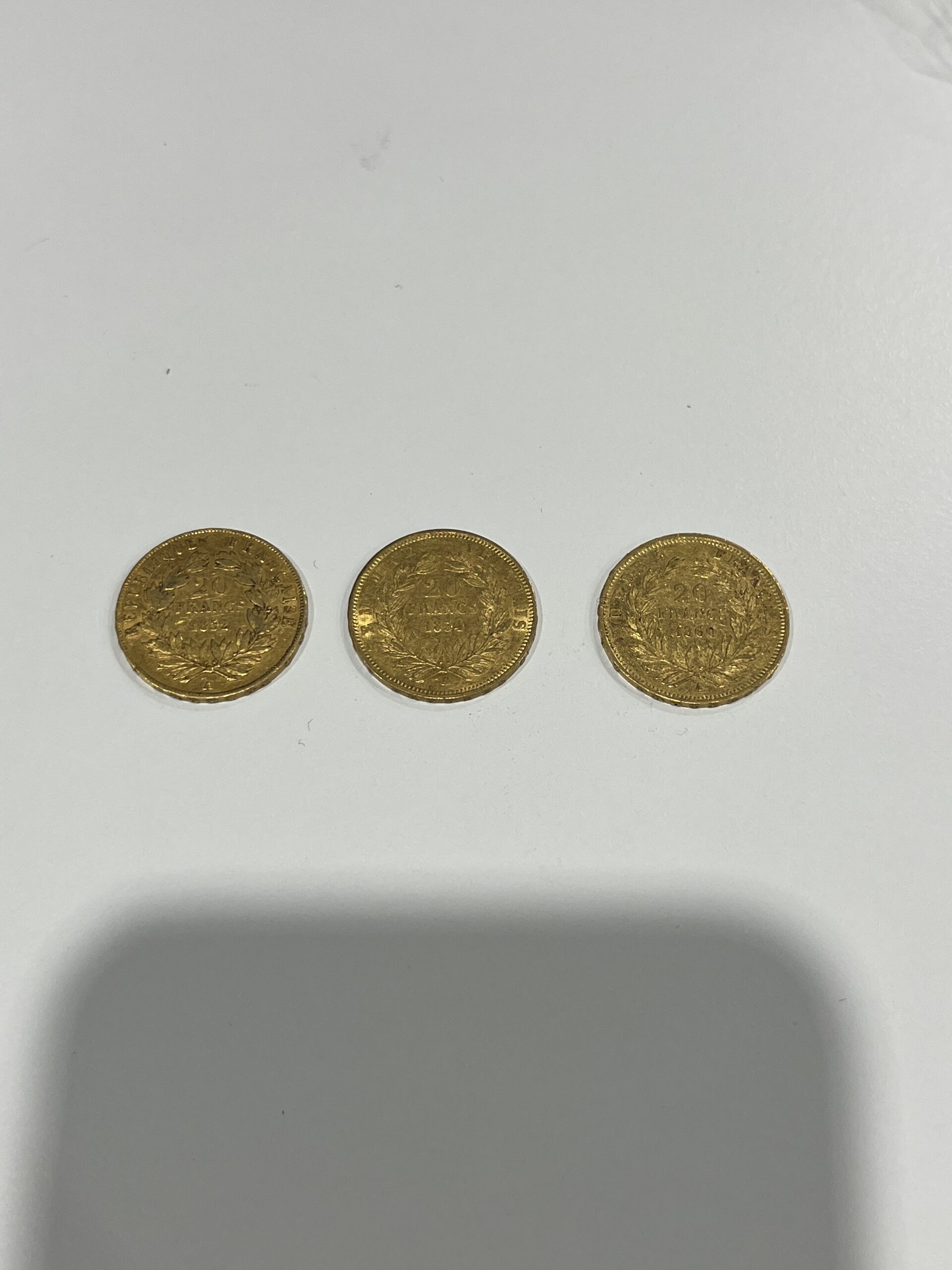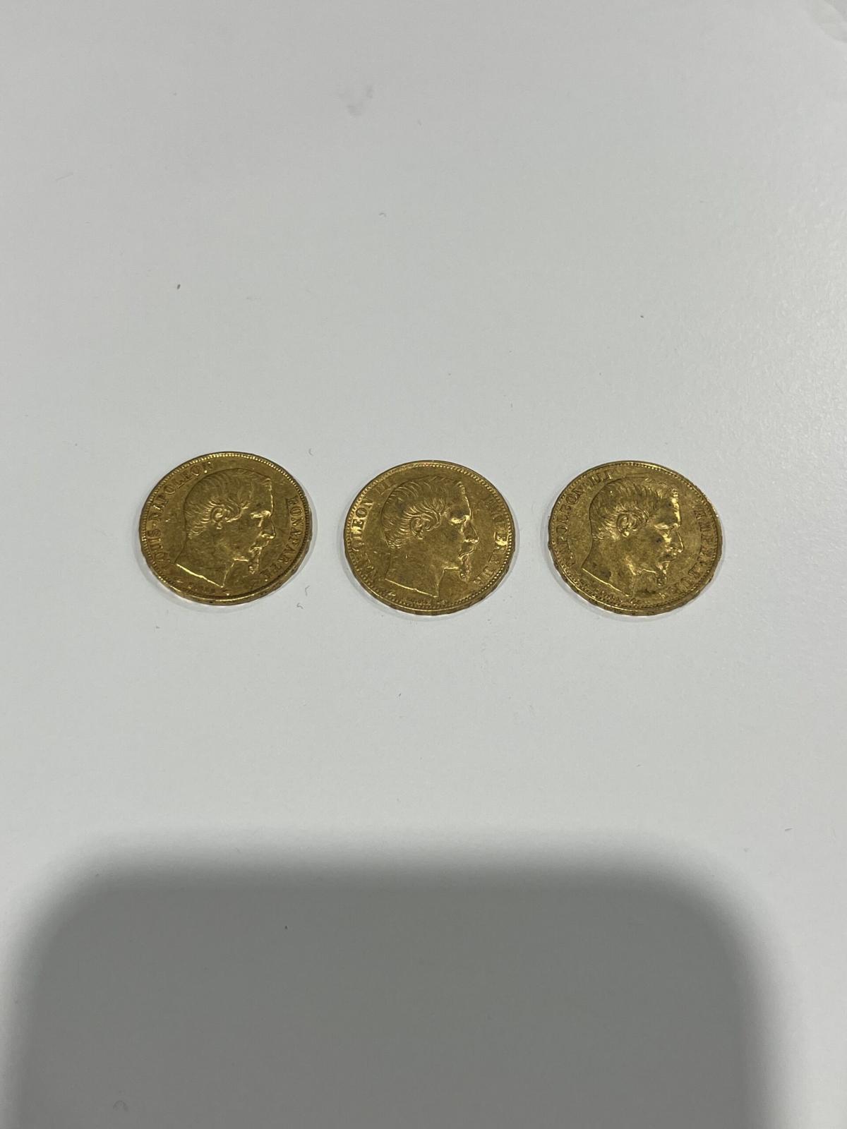 3 PIECES de 20 Francs or Napoléon III tête nue