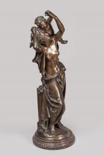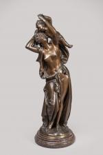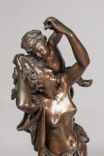 Albert-Ernest CARRIER-BELLEUSE (1824-1887). "Les caresses de l'Amour". Groupe en bronze à patine médaille signé sur...