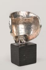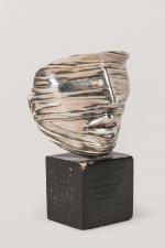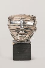 Igor Mitoraj (1944-2014) « Visage bandé » Masque en bronze argenté. Signé, marqué au dos Bonne année...