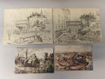Edouard LEVERD (1881-1950), Deux aquarelles et deux dessins au crayon "Scènes de champ de...