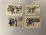 Edouard LEVERD (1881-1950), ensemble de quatre aquarelles humoristiques sur la vie de caserne pendant la Première Guerre mondiale.