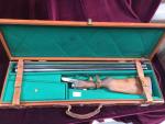 FUSIL de CHASSE juxtaposé KELLER à Villefranche n°9678 et B195. Calibre 16mm. Crosse en noyer. Dans sa valise de transport en cuir. Arme de catégorie C1c.