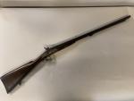 Crosse bois, platines avant décoré à l'or avec scène champêtre gravée, canons en table à pans puis rond, pontet à volute, baguette bois tête laiton, oxydation