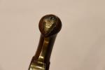 Crosse bois, calotte bronze ciselée stylisée en forme de bec d'oiseau