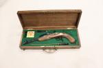 France Pistolet de tir de précision de salon Crosse bois finement quadrillé, chien jaspé, pontet a volute,...