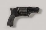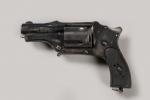 France Revolver à système Crosse bois, carcasse fer bronzé, à brisure, canon à pans, barillet cannelé...