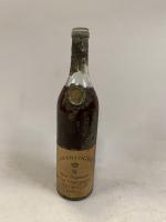 1 B Grand Cognac Fine Napoléon Fine Champagne Lichtwitz & Cie à Bordeaux, marquée 1811 sur la capsule. Médaillon de verre, millésime sur la capsule. Étiquette tachée et déchirée, bouteille très sale. Niveau épaule.