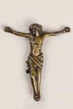 CHRIST en bronze, pieds superposés. Style XVème siècle. H. 9 cm.