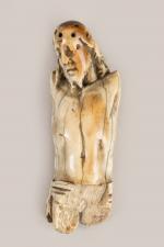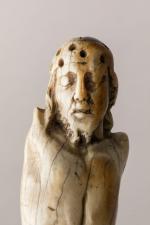 CHRIST en ivoire sculpté. Époque XVIème siècle. H. 7 cm. Nombreux manques. CITES N°...
