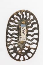 Petit MEDAILLON en bronze ajouré à décor d'une Vierge à...