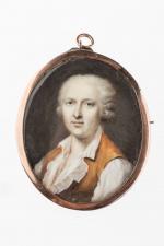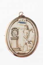 A rapprocher du travail de Pierre ROUVIER (1742-1815). Au revers, miniature peinte en grisaille et poudre dorée d'un athlète au drapé tenant un flambeau et prêtant serment sur une couronne ovale de feuillage chiffrée en son centre JBG et posant sur un piédestal.