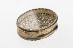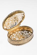 Petite BOÎTE ovale en argent vermeillé 800 °/°° à décor floral ajouré dessus/dessous, protégé par...