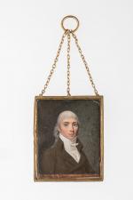 ECOLE FRANCAISE début XIXème siècle. Portrait d'homme en habit marron....