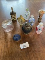 Lot de bibelots de vitrine: 6 tabatières chinoises, un cachet...