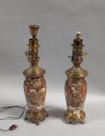 SATSUMA: Paire de vases balustre montées en lampe à décor...