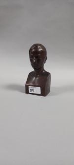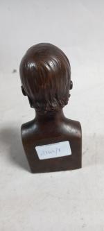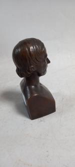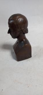 ECOLE FRANCAISE du XIXe siècle, "Buste d'homme", 1848, bronze patine brune monogrammé J.C et daté 1848 . H 15 cm