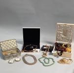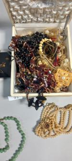 Fort LOT de BIJOUX fantaisie divers dont SWAROVSKI ; on y joint une boîte style...