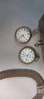 Fort LOT de BIJOUX fantaisie divers dont SWAROVSKI ; on y joint une boîte style ART NOUVEAU en métal contenant deux montres à gousset en métal et pièces en métal françaises. EN L'ETAT
