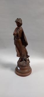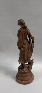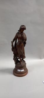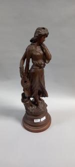 Luca MADRASSI (1848-1919) " Mignon" Sculpture en régule signée sur la base. H totale 60 cm Légers accidents.
