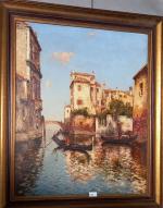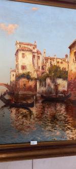 Albert-Ferdinand DUPRAT 51882-1974°  "gondoles  à  Venise". Huile...