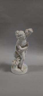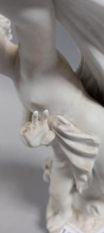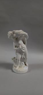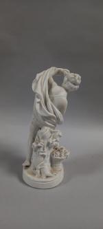D'après Falconet " Femme à l'antique rabattant sa cape" Biscuit en porcelaine. H : 28 cm. Accidents et Petits manques