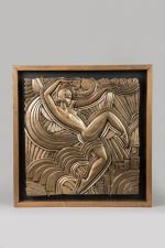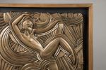 Bas-relief en stuc à patine dorée, dans un cadre à fond noir. Réduction du bas-relief des Folies Bergères. Tirage posthume. H. 59 cm L. 57 cm