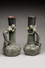 Aristide de Ranieri (1865-1954) Paire de vases en terre cuite polychrome à décor en haut-relief de...