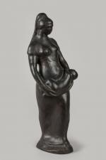 Georges Salendre (1890-1985) « Femme à l'enfant » Groupe en bronze à patine noire nuancée. Signé. H. 54 cm Provenance : Famille de l'artiste TR