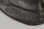 Groupe en bronze à patine noire nuancée. Signé. H. 54 cm