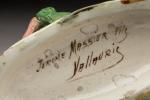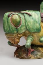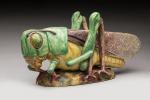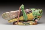 Jérôme Massier Fils (1850-1926) « Sauterelle » Centre de table en céramique polychrome. Signé et situé Vallauris....
