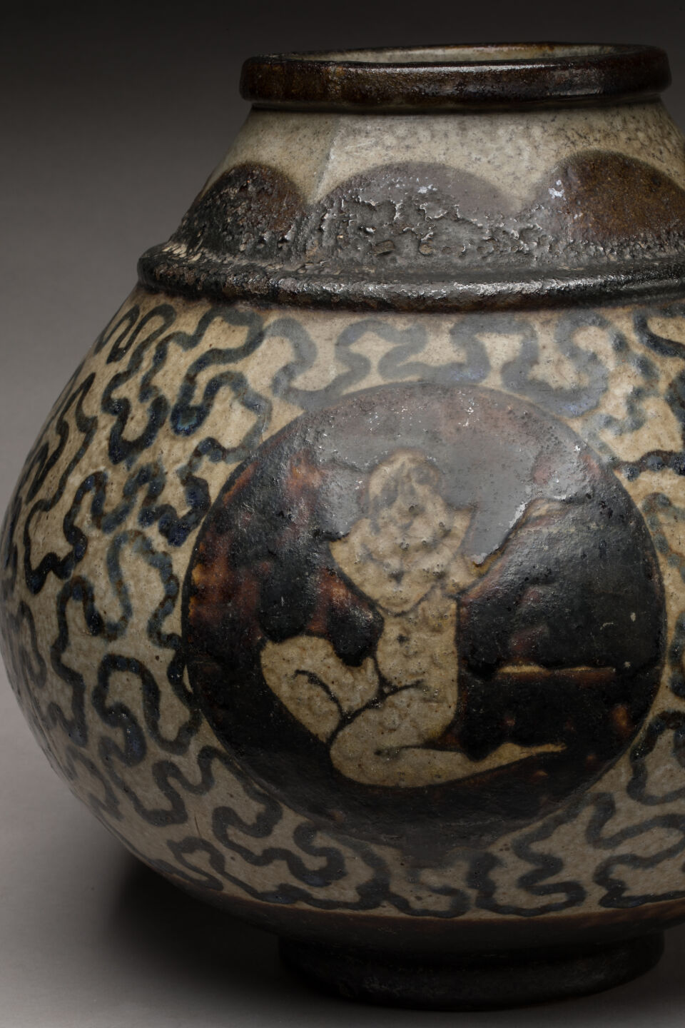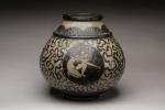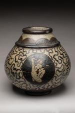 Vase de forme pansue en céramique polychrome à...