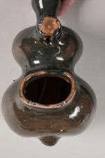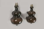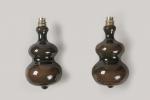Paire d'appliques en céramique brun noir de forme bilobée. Manques d'émail et petit éclat. Non signées. H. 21 cm L. 12 cm