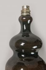Georges Jouve (1910-1964) Paire d'appliques en céramique brun noir de forme bilobée. Manques d'émail et petit...