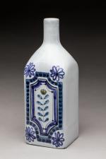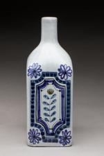 Roger Capron (1922-2006) Bouteille de forme carrée en céramique blanche à décor stylisé bleu. Signée. H. 25 cm TR