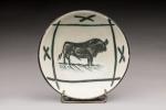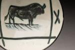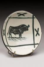 Pablo Picasso (1881-1973) « Taureau » Coupelle ronde en terre de faïence blanche, gravure à...