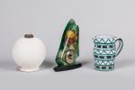 Lot de trois pièces comprenant : Robert Picault (1919-2000) Pichet à anse en céramique beige à décor...