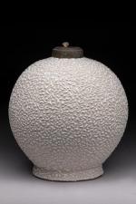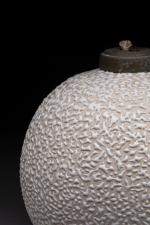Pied de lampe de forme boule en céramique beige grenelée. H. 17 cm